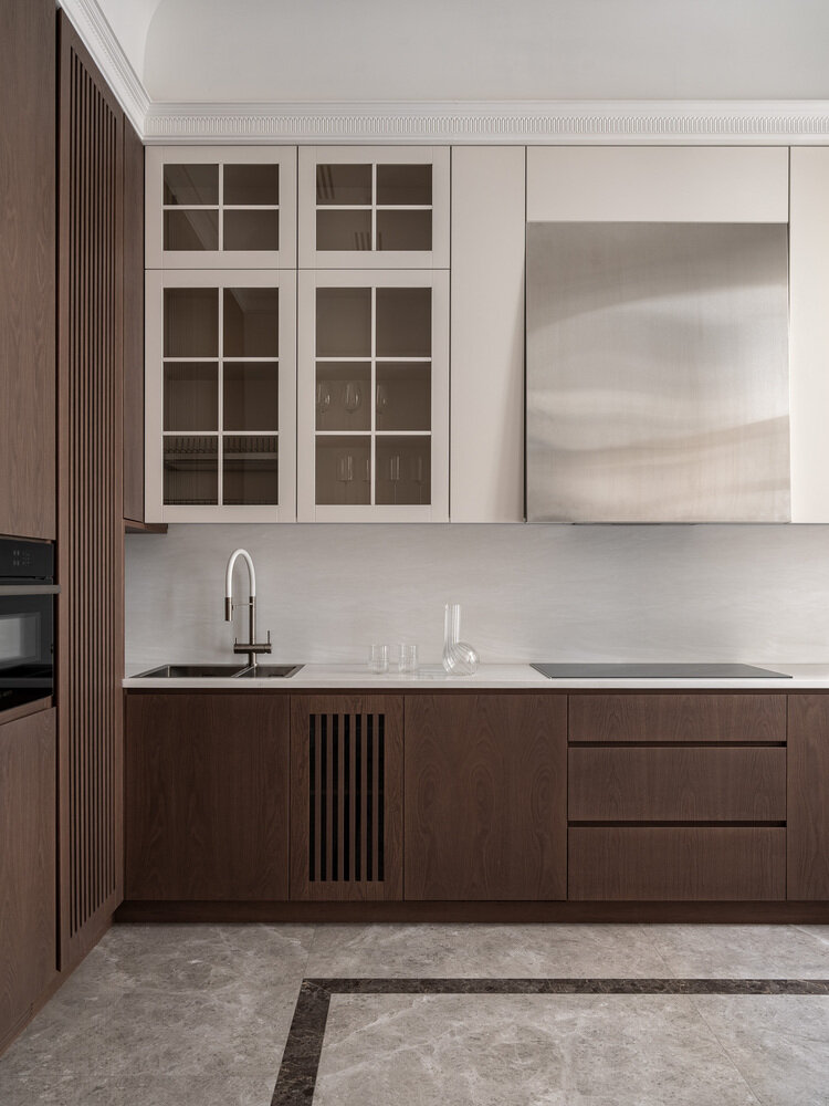Фотография: Кухня и столовая в стиле Классический, Современный, Эклектика, Квартира, Проект дня, Москва, Анна Макеева, Кирпичный дом, 3 комнаты, Более 90 метров, современный с элементами классики и роскоши – фото на INMYROOM