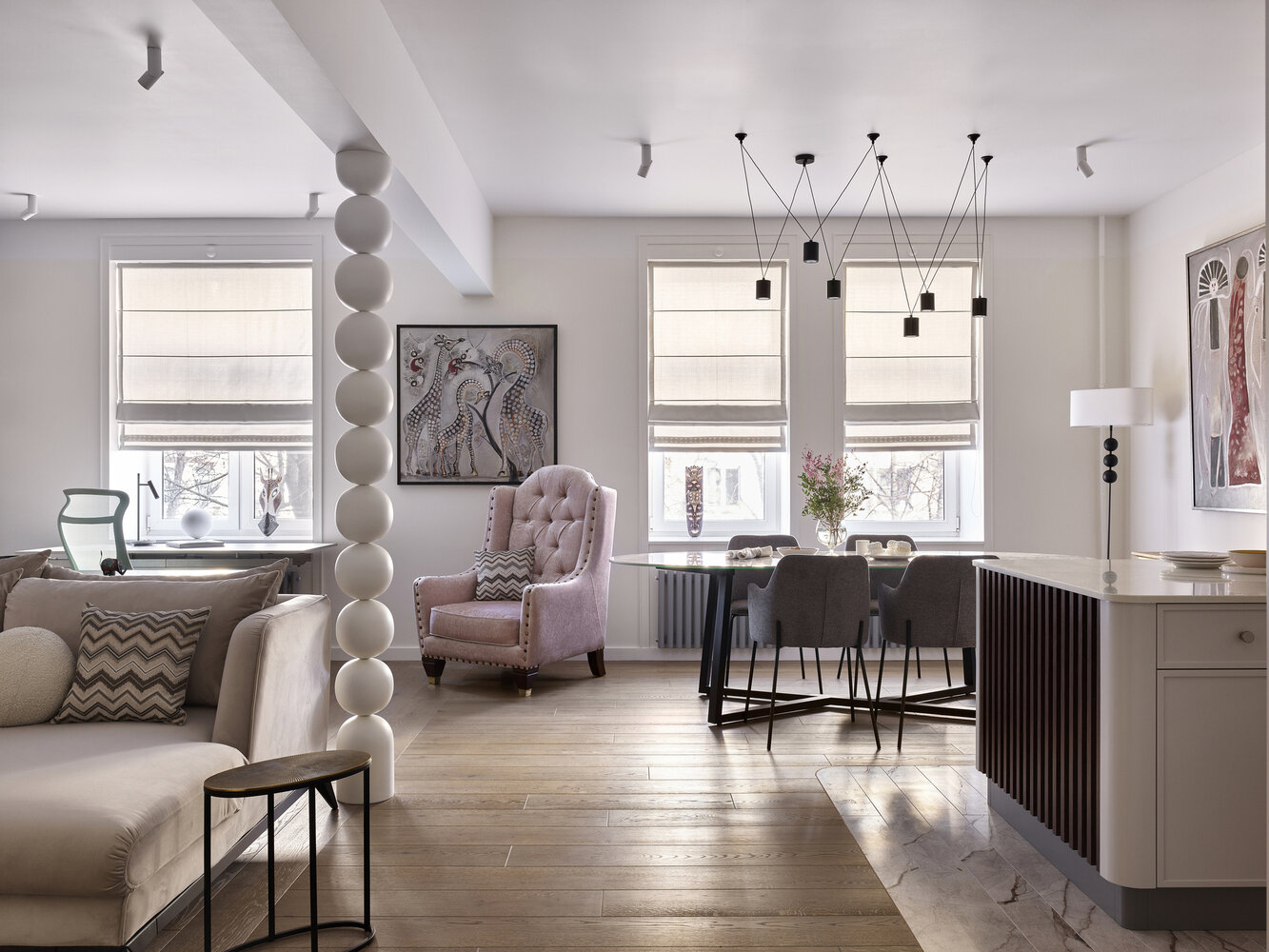 Нетривиальный интерьер в трехкомнатной сталинке 102 м², где всё вращается вокруг шариковДизайн