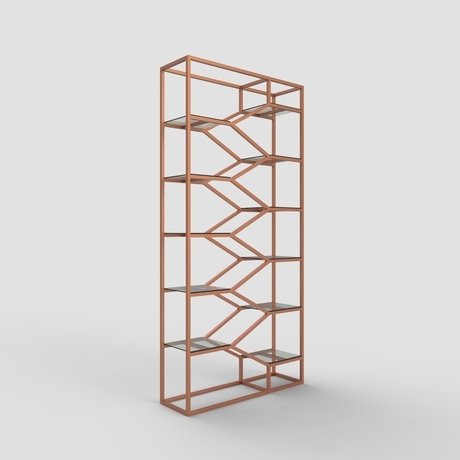 Стильный металлический стеллаж Aurora с геометрическим дизайном от студии мебели Decor Pronto. Добавляет динамики и сложности пространству, подходит для зонирования помещений. Этот стеллаж станет прекрасным интерьерным акцентом в пространстве. Выполнен из крепкого металлического профиля 20х20х2 мм. Изделие покрыто порошковой краской, которая наносится методом запекания, имеет высокие показатели стойкости к истиранию, повреждениям, выцветанию и прослужит долгие годы. Полки выполнены из 6 мм закаленного стекла.