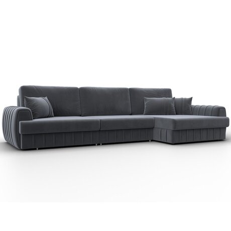 При габаритах: 336x92x162 см подойдет для просторных комнат для большой семьи или вечеров в компании, легко раскладывается, обеспечивая спальное место 160x292 см. Угол дивана универсальный, можно собрать с левым или с правым углом. - Ткань: велюр.