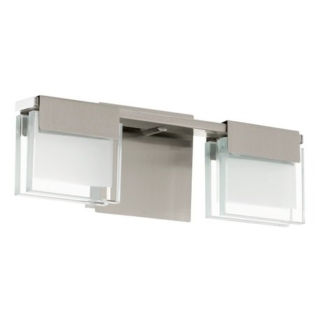 Мощность: 5.8, Количество ламп: 2, Назначение светильника: для комнаты, Стиль светильника: модерн, Материал светильника: металл, стекло, Тип лампы: светодиодная, Длина (мм): 320, Ширина: 135, Патрон: LED, Цвет арматуры: матовый никель, Вес нетто: 1.81
