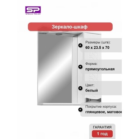 Зеркало-шкаф правый с подсветкой Sensation белого цветаКира ВяхиреваОтличная вещь для ванной комнаты. Смотрится стильно, высокое качество отображение и приятная подсветка без теней и ослепления глаз. Радует работа петель при закрытии дверей. Работают мягко, без удара. Смотрится шкаф отлично
