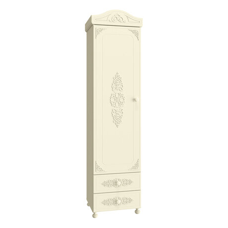 Ассоль плюс АС-1Однодверный пенал для детской, ЛДСП/МДФ, цвет ваниль, объемный 3D фасад, 3 полки, 2 выдвижных ящика, 53×42×206 см
